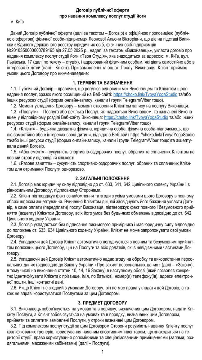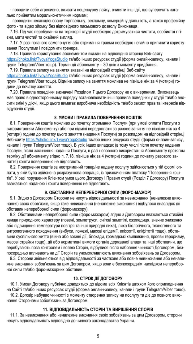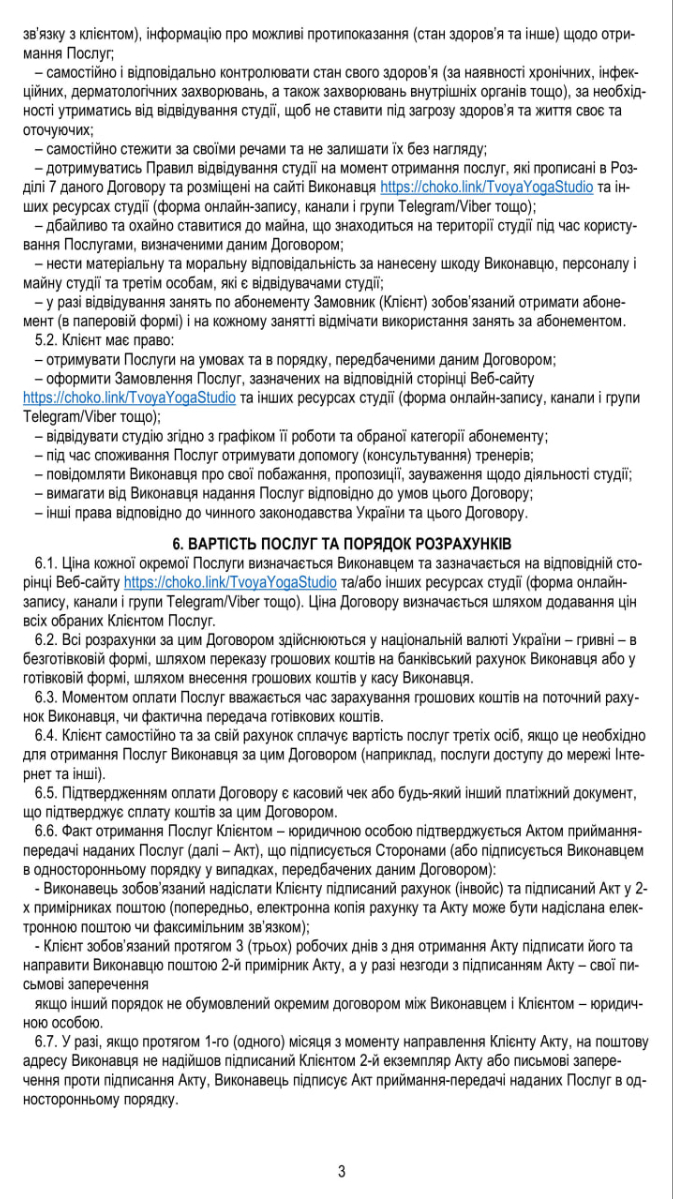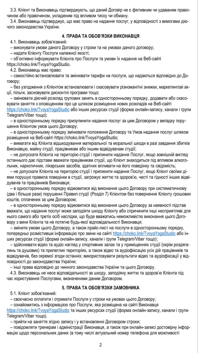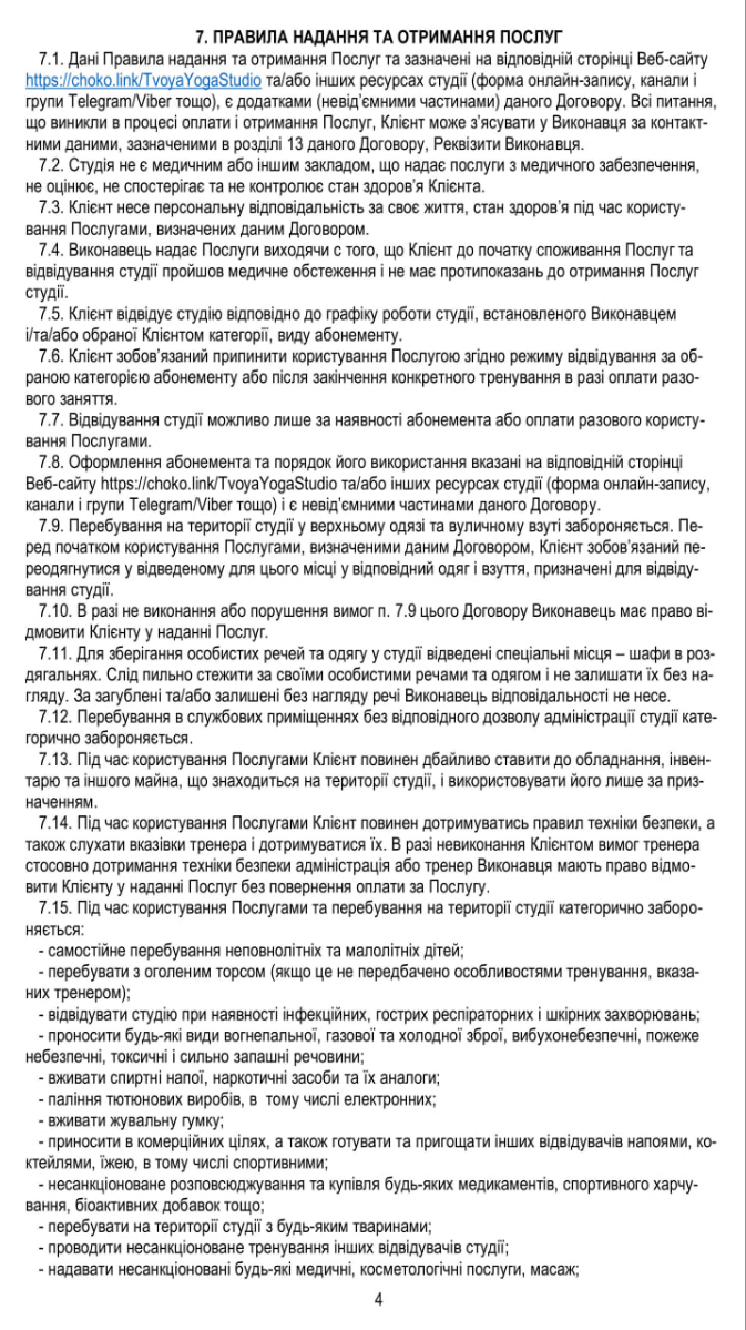 𖠁 Студія не несе відповідальності за погіршення вашого здоров'я пов'язаного із загостренням хронічних захворювань або загострення травм, отриманих до занять у студії, а також через необережність клієнта.