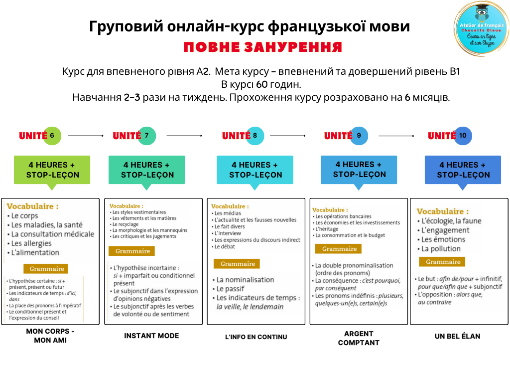 ✔️розвиток навичок комунікації, що наближаються до рівня франкофона;