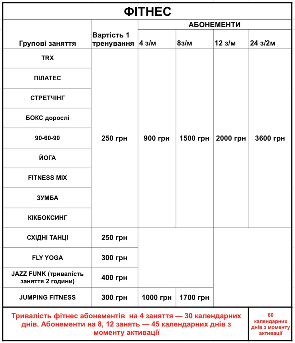 💪🏻Тривалість фітнес абонементів на 4 тренування — 30 календарних днів. Тривалість фітнес абонементів на 8, 12 тренувань — 45 календарних днів з моменту активації