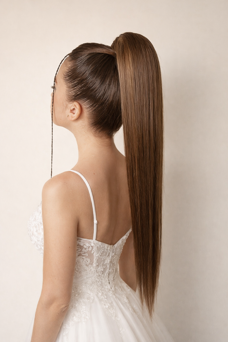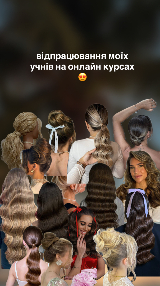 Високий гладкий хвіст для модних зйомок, кліпів, та різних зіркових святкувань. Зализування хвоста запозичено від бальних зачісок, але виконання наближено до більш комерційногоСхема зачісувань. Техніка послідовності рухів руками⬇️